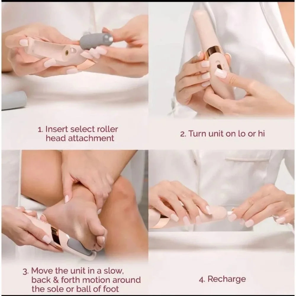 Seu sistema elétrico potente e seguro remove as células mortas com delicadeza, proporcionando uma esfoliação profunda e relaxante — o segredo para pés macios, saudáveis e com aparência de salão!